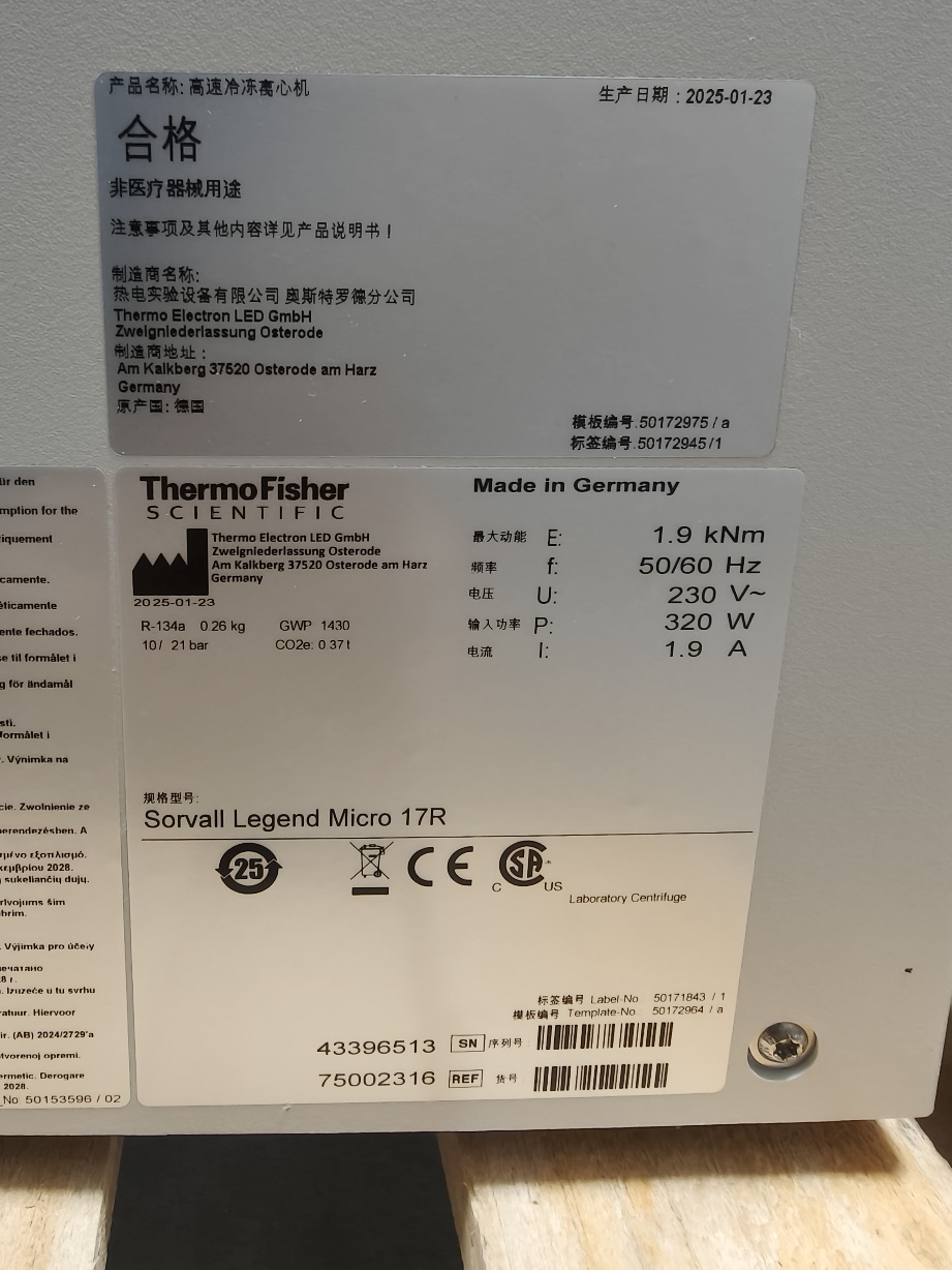 | 75002445 | LEGEND MICRO 21R冷冻型微量台式离心机 LEGEND MICRO 21R 230V 50/60HZ